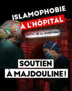 Alors que l’hôpital public est à l’agonie et en manque criant de personnels, l’AP-HP satisfait son islamophobie en mettant à pied l’infirmière. Ce n’est pas un cas isolé : les travailleuses de la santé supposées musulmanes subissent régulièrement des injonctions à retirer leur calot. Majdouline ayant refusé de retirer son couvre-chef, la direction de l’AP-HP est bien décidée à en faire un exemple pour mettre tout le personnel au pas. Le premier licenciement de Majdouline B. a été suspendu par la justice grâce à une mobilisation syndicale massive.