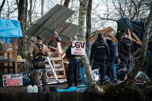 L’opposition à la LGV s’organise et la lutte prend peu à peu de l’ampleur. Des collectifs locaux contre ce projet fleurissent le long du tracé de la LGV et se réunissent dans la coalition LGV Non Merci. Depuis octobre 2023, La Guinguette Vaillante est occupée, une zone à défendre située sur l’écluse de l’Hers, à Saint-Jory, près de Toulouse. Les camarades sur place protègent les arbres supposés être abattus pour le projet de construction. Les forces de l’ordre, les gendarmes et l’unité de la cellule nationale d’aide à la mobilité (Cnamo) interviennent pour détruire les lieux d’habitation et tenter d’expulser les personnes qui y vivent.