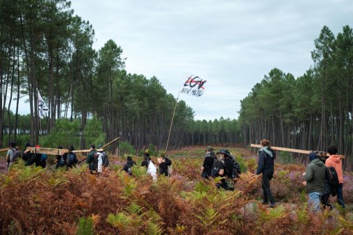 Du 11 au 13 octobre a eu lieu le week-end de mobilisation nationale « Freinage d’urgence », à Lerm-et-Musset, dans le sud Gironde, contre le projet ferroviaire de Ligne à grande vitesse (LGV) Bordeaux-Toulouse-Dax. À l’origine de l’événement, les Soulèvements de la Terre et LGV Non Merci, une coordination de collectifs constituant un réseau d’opposants et opposantes sur le territoire néo-aquitain.
