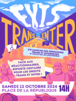 Chaque année, les personnes trans et intersexes manifestent avec leurs alliées pour leurs droits. Après une année à lutter contre des attaques de plus en plus sévères, l’heure de la contre-offensive a sonné. Ce 12 octobre, il s’agira d’imposer nos revendications, de construire une convergence encore trop fragile avec le mouvement social et les militants et militantes de gauche.