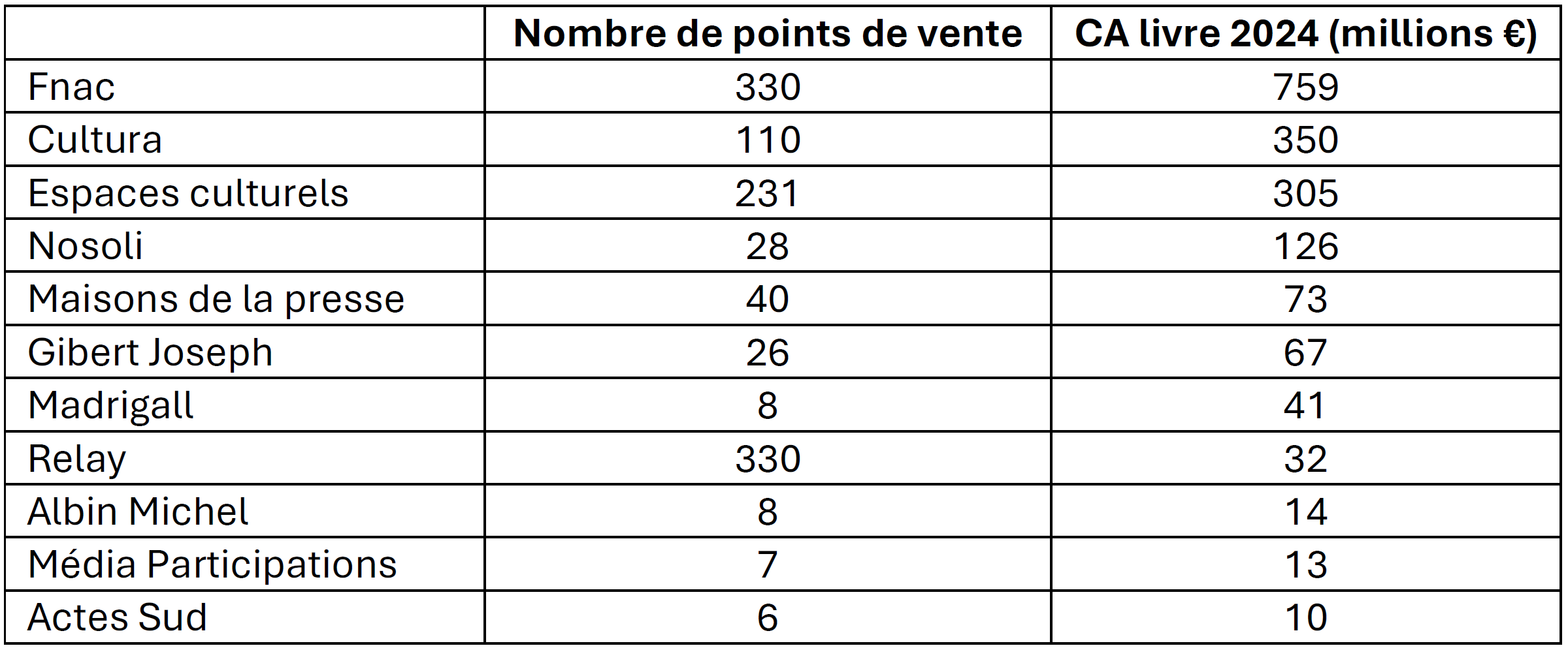 Entre les réseaux comprenant plusieurs dizaines de librairies (Gibert Joseph, Nosoli…) et les librairies dites « indépendantes », mais qui appartiennent à de grands groupes éditoriaux (voir le tableau ci-dessous [3]), la part des ventes de livres en librairie pleinement indépendantes est très faible.