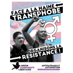 C’est en s’unissant et en faisant front commun pour défendre chacune d’entre nous que nous résisterons à l’offensive réactionnaire en cours, mais aussi que nous continuerons à arracher nos droits légitimes : arrêt des discriminations et violences médicales, dépsychiatrisation réelle et effective des parcours de transiton, réelle politique de santé publique (mettant notamment fin aux pratiques des équipes pluridisciplianires de l’ex-SoFECT), sécurité sociale renforcée contrôlée par notre classe, simplification des procédures de changement d’état civil (pour qu’elles reposent sur une seule attestation sur l’honneur) ou encore suppression du marqueur de sexe (symbole archaïque du contrôle de l’Etat sur les corps et les familles qui expose à la discrimination). Pour un monde libéré du patriarcat, émancipé de toute oppression sur la base du genre !