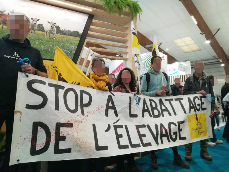 Et en plus, la France va être signataire de l’accord UE-Mercosur [4] , dont les victimes vont encore être les éleveurs et éleveuses bovins puisqu’on va échanger des bagnoles allemandes contre de la viande bovine qui va inonder le territoire européen à moindre coût. On nous fait croire qu’il va y avoir des clauses de sauvegarde, mais en fait, ce sont des mesures d’urgence temporaires qui ne vont pas protéger l’élevage français. Et ces mesures n’empêchent pas la compétitivité des productions d’Amérique du Sud qui proviennent d’immenses fermes de dizaines de milliers d’hectares, dirigées par des agri-managers qui exploitent de la main d’oeuvre à moins d’un euro de l’heure. On ne pourra jamais être compétitif.