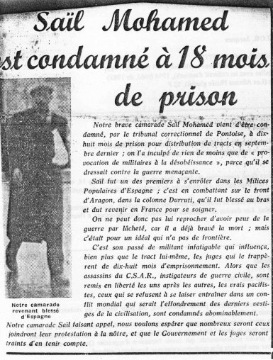 A. B. : Mais ce qui caractérise Saïl, au moins au sein de sa propre génération, c’est sa prise de conscience prématurée de l’universalité du combat révolutionnaire et de la nécessité de s’engager aux côtés des peuples opprimés partout dans le monde. D’ailleurs, il est resté longtemps méconnu en Kabylie, jusqu’à aujourd’hui encore. Il se trouve qu’il est plus connu en France et en Espagne, principalement du fait de son engagement syndical et antifasciste. Et puis, bien-sûr, par son engagement dans la guerre civile espagnole de 1936, au sein de la célèbre colonne Durutti.
