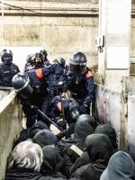 Des camarades italiens et italiennes bloquant ce fameux abattoir à Périgueux ont subi de très fortes violences policières : coups de pieds, étranglements, coups à la tête. Des perquisitions de leur effets personnels (téléphones, papiers, véhicules) ont aussi eu lieu. Ils et elles ont été soumis et soumises à une décision administrative d’OQTF. Les militants et militantes se sont retrouvées dans un pays dont ils et elles ne comprenaient pas la langue, obligées de quitter la France sans moyens. Un réseau d’aide s’est construit, notamment avec des camarades de la région pour leur venir en aide et pour les héberger. Du jamais vu pour des militants pacifistes réclamant l’arrêt du meurtre industriel d’animaux.