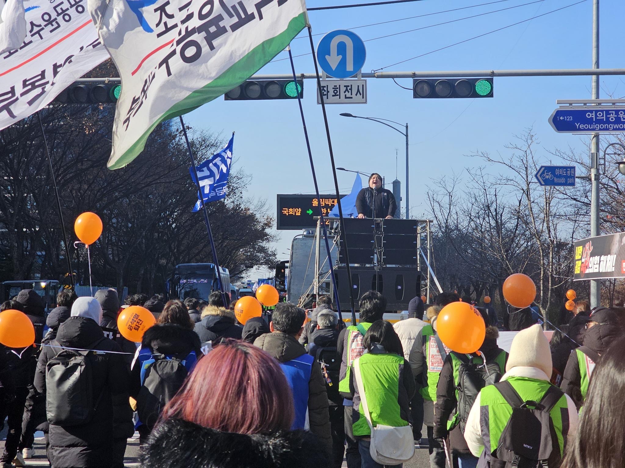 Les procureurs et la police ont procédé à l’arrestation de Yoon. Cependant, le 3 janvier, des manifestants d’extrême droite se sont rassemblés devant la résidence présidentielle, bloquant l’exécution du mandat d’arrêt. En réponse, la KCTU a déclaré une « arrestation populaire » et organisé une manifestation continue de trois jours devant la résidence.