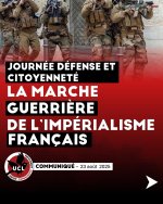 L’Union Communiste Libertaire s’oppose fermement à la JDC, ainsi qu’à tous les outils de contrôle utilisés par la bourgeoisie. L’heure est à l’action directe du monde du travail et de la jeunesse, organisons-nous sur nos lieux d’étude, de travail et de vie pour construire un grand mouvement anti-impérialiste et anti-militariste !
