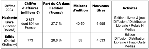 • 2022-2023 : rachat du numéro 1 (Hachette) par le numéro 2 (Vivendi-Editis passé entretemps sous le contrôle de Vincent Bolloré).